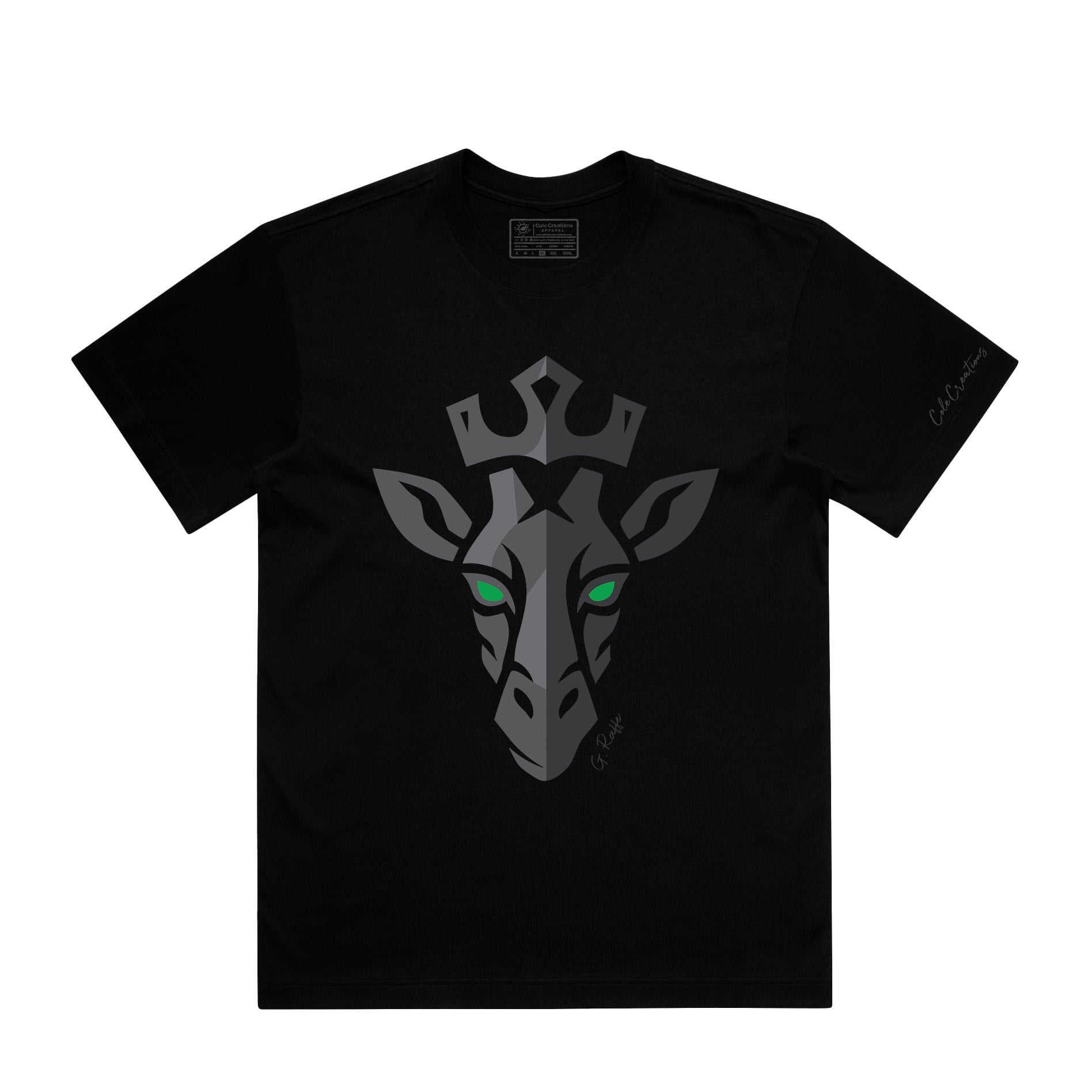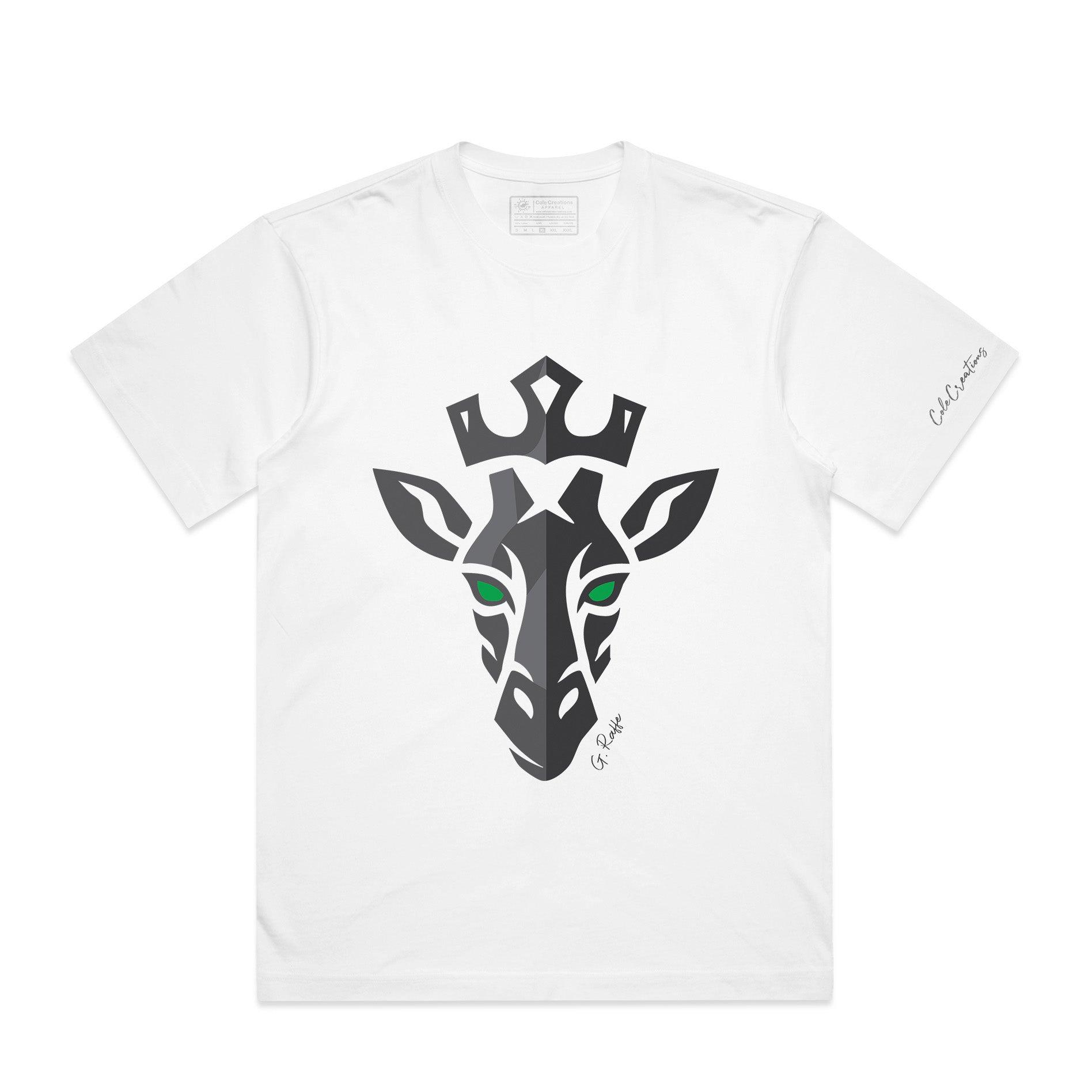 Introducing the G. Raffe Tee — a bold, colorful design inspired by the love for a loyal companion. This vibrant giraffe head pays tribute to Sage, a cherished dog who loved her favorite toy, affectionately called "G. Raffe."
