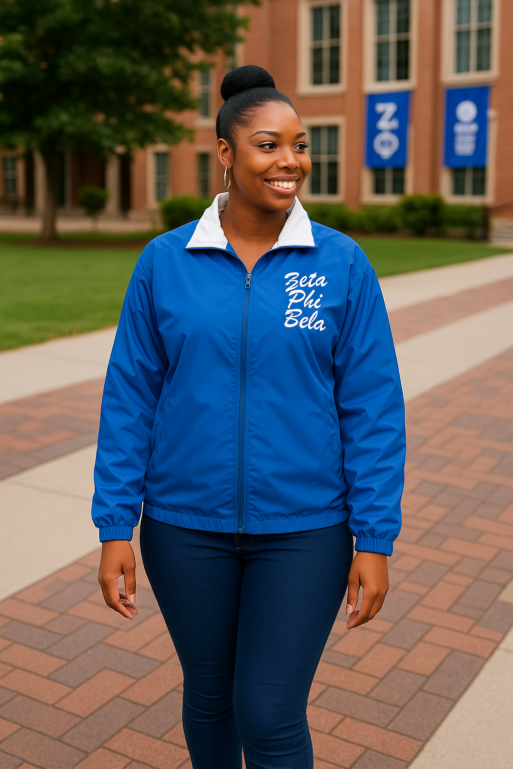 Zeta Phi Beta Reversible Windbreaker Jacket – 1920 Finer Woman Edition (Blue/White)